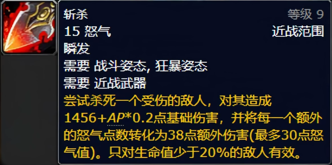 我们目前能追溯到 相对最早的原型,是《魔兽世界》里战士的技能 斩杀,当boss血量下降到一定百分比时可用,能加速击杀的过程。与之对应的血量百分比分界线,也就是斩杀线。