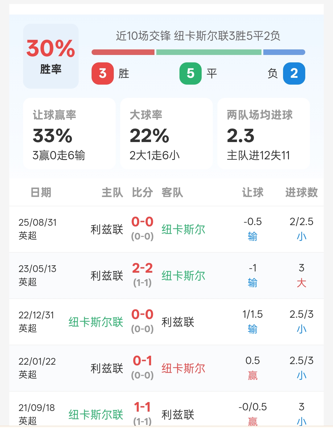 综上所述,纽卡斯尔联坐拥强势主场,且整体状态与阵容完整性远胜对手;利兹联状态萎靡、客场乏力且阵容不整。历史交锋中,近10次纽卡斯尔联3胜5平2负稍占上风。因此本场比赛推荐胜。