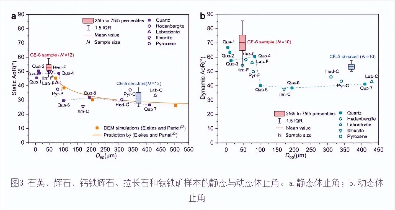 月球正面样本的静态和动态休止角,均明显低于嫦娥六号样本。
