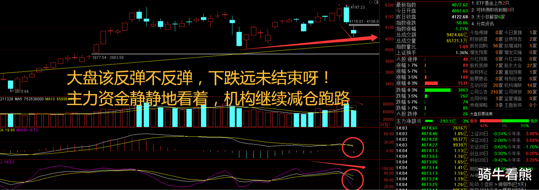 上证指数周三出现跳空缺口,现在要看60日线能否稳住,继续下行就要跌破4000点了。A股对外部环境生变产生反馈是合理的,尤其是处于绝对高位的微盘股和科创板块,策略上建议继续耐心等待稳定之后的参与机会,多观望。接下来注意上证指数能否在4080点之上稳住。