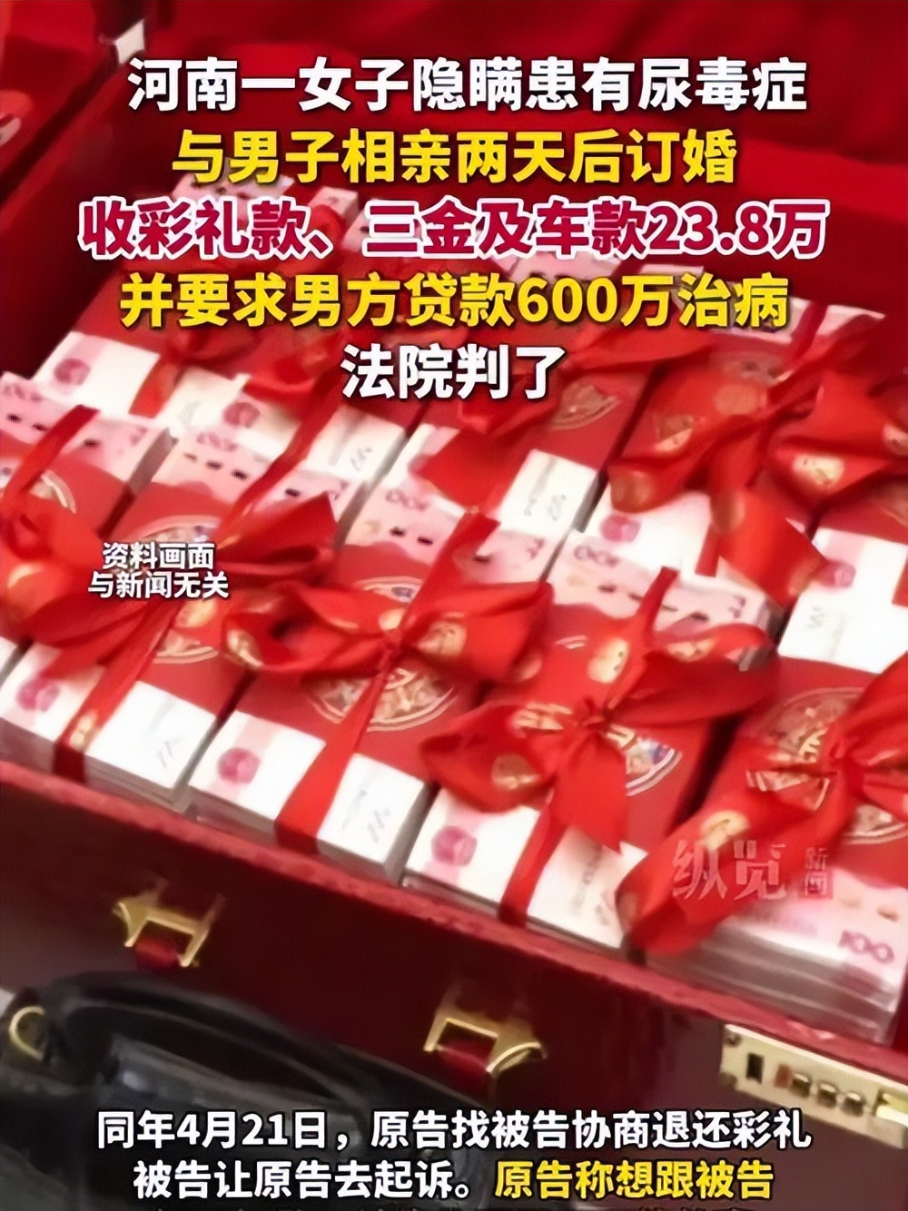 腾讯新闻《女子隐瞒患尿毒症相亲两天后订婚 彩礼纠纷引争议》