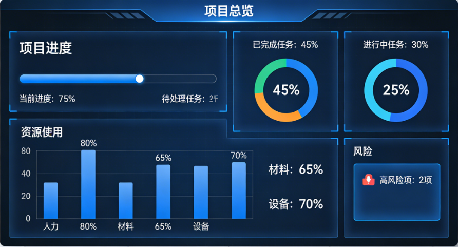 工程项目建设过程中,面临工期延误、成本超支、质量安全隐患、合同纠纷等多种风险,科学的风险管控的决策支撑是项目成功的关键。工程项目管理系统通过数据化、智能化手段,有效降低项目风险,提升决策科学性。