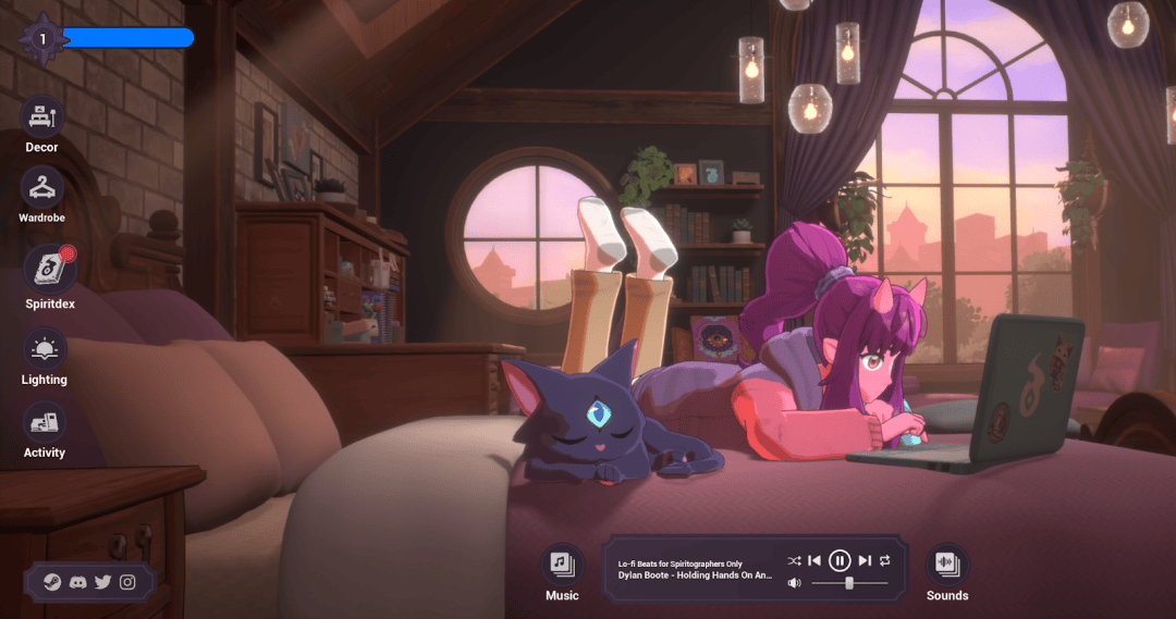 “我们尽可能地自行进行了市场调研。我们仔细阅读了评论,查看了Vginsights、SteamDB等网站上的数据。我们也注意到Lofi Girl和Chill Hop等lofi频道的流行。我们曾设想过一个功能,让玩家可以在房间里放松地听音乐。我们中的一位提议:‘为什么不把这个功能做成整个游戏呢?’我们从Chill Corner和Virtual Cottage等游戏中汲取了灵感。”