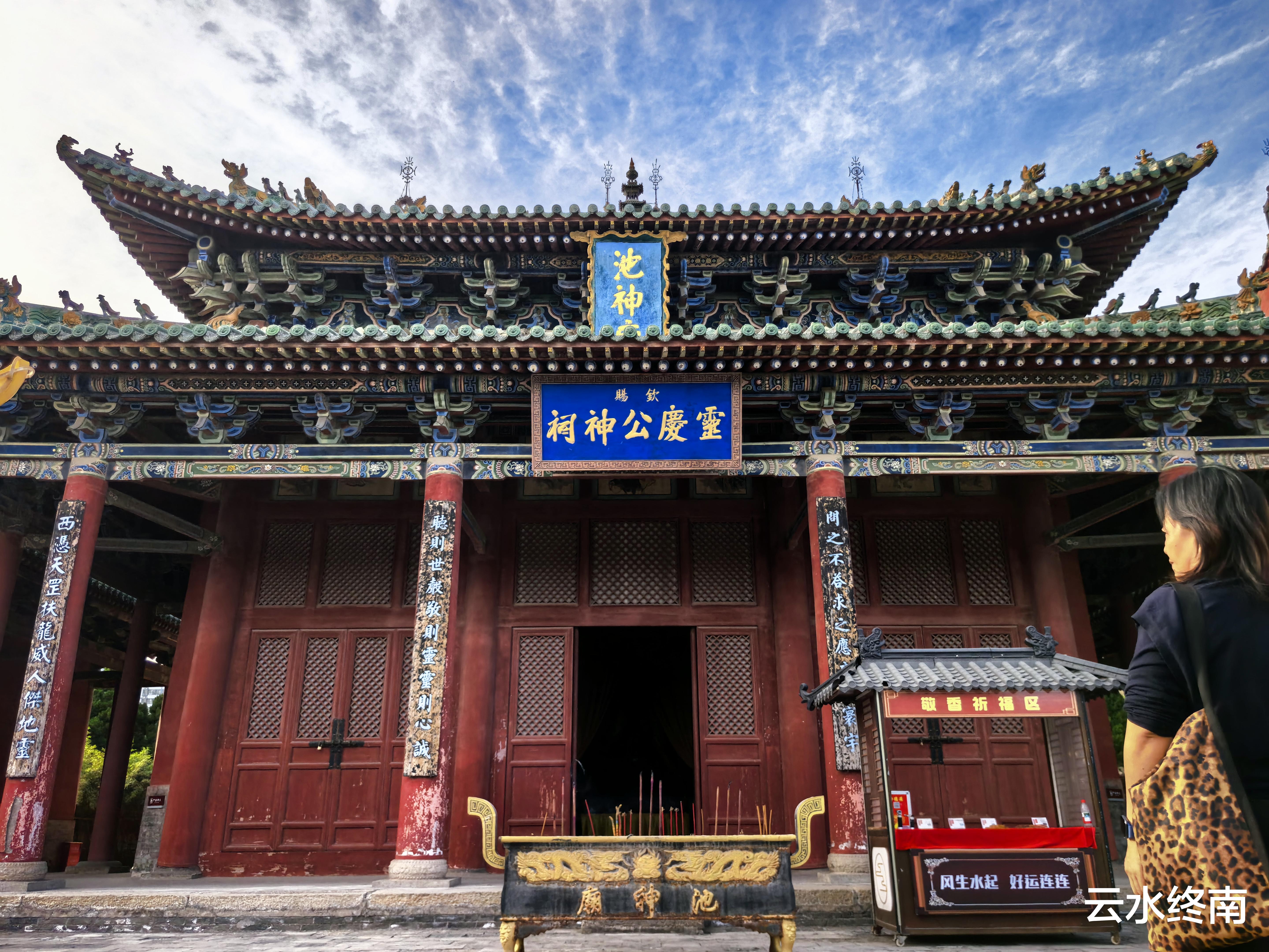 再往后,就是著名的“三大殿”。三大殿始建于唐,现为明嘉靖十四年遗构,面阔五间,重檐歇山顶。由灵庆公神祠、雨师太阳神祠、条山风洞神祠组成。