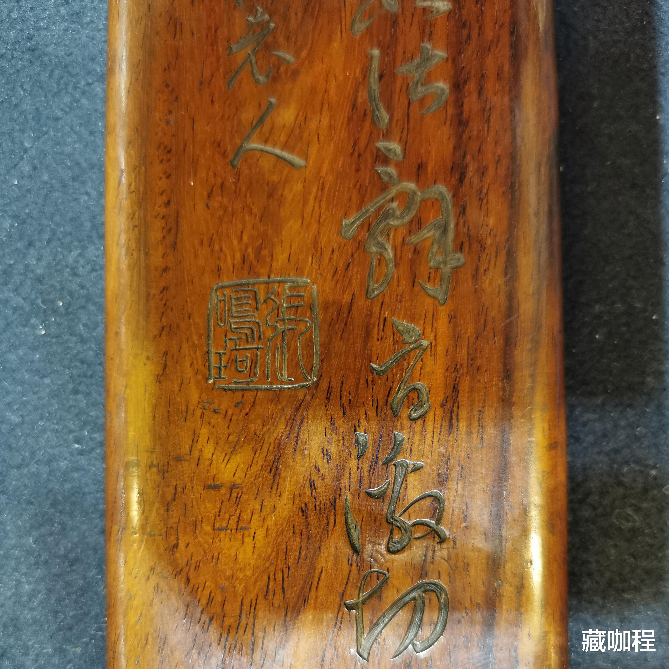 尺子正面刻诗文,竖排两行约四十个字,具体内容不太要紧,且辨认有一定难度,本文略去。