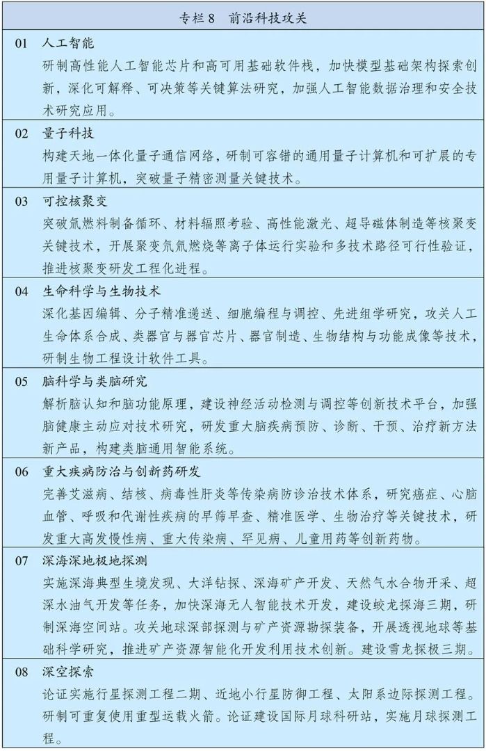 在规划的产业发展章节中,人工智能被纳入建设现代化产业体系的重要内容。规划提出要抓住新一轮科技革命和产业变革机遇,通过科技创新与产业创新的深度融合,不断催生新质生产力,并在新兴产业和未来产业领域形成新的增长动能。在这一框架下,人工智能与机器人、智能网联新能源汽车、生物医药、高端装备等产业共同被列为战略性新兴产业的重要组成部分。与此同时,规划还提出前瞻布局未来产业,推动量子科技、生物制造、脑机接口、具身智能以及第六代移动通信等前沿领域发展。从政策逻辑来看,这一布局意味着人工智能不仅是一项单独的技术方向,更是连接多个未来产业的重要技术底座。