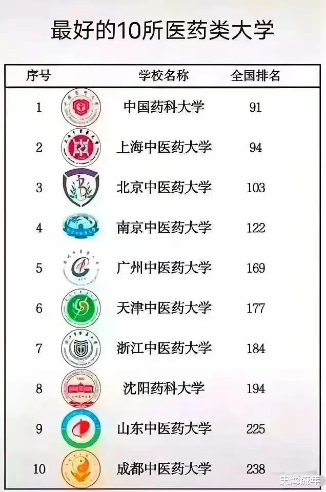 其中,排名第一的是中国药科大学,211大学,全国第一轮和第二轮“双一流建设高校”,在全国高校排名中名列第91位。排名第二的是上海中医药大学,“双一流建设高校”,在全国排名第94位。