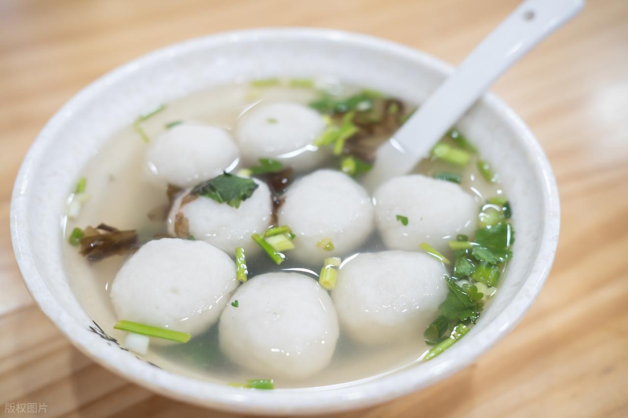 捏成拇指大的丸子后,需放入冷水中漂洗半小时,再捞起放入骨汤中煮至蓬松胀大。这道工序保证了丸子的细腻口感,吃起来爽滑弹牙,别具一格。