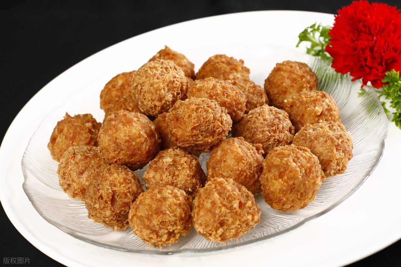 炸好的丸子外酥里嫩,蘸上椒盐,入口咔嚓作响,令人食欲大增。