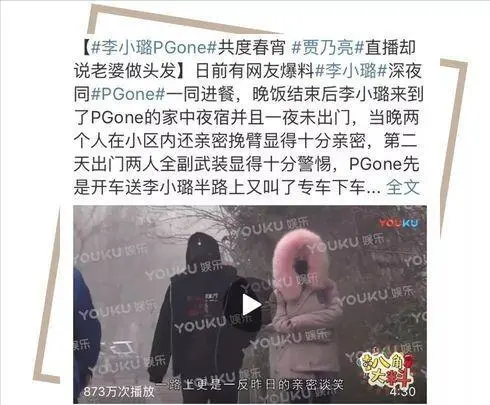 2017年底的 “夜宿门”,成为李小璐人生的断崖式转折点。当年12月,她被拍到与嘻哈歌手PG One共度良宵,两人穿着情侣装的画面迅速发酵。而同一时间,贾乃亮正在直播中笑着回应 “小璐去做头发了”,这份信任被网友调侃为 “年度最心酸画面”。