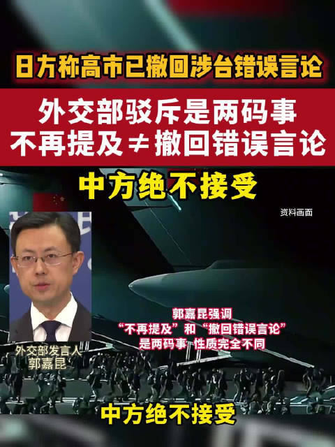 日本首相高市早苗在涉台问题上的错误言论也严重违背了中日四个政治文件精神。她将大陆对台动武可能构成日本“存亡危机事态”,粗暴干涉中国内政,严重违背了中日之间明确规定的“一个中国”原则。面对中方的强烈反应,日方却妄想以“不再提及”来淡化搪塞,企图逃避责任,这种自说自话的做法,充分暴露了日本在相关问题上毫无诚意、颠倒黑白的态度。