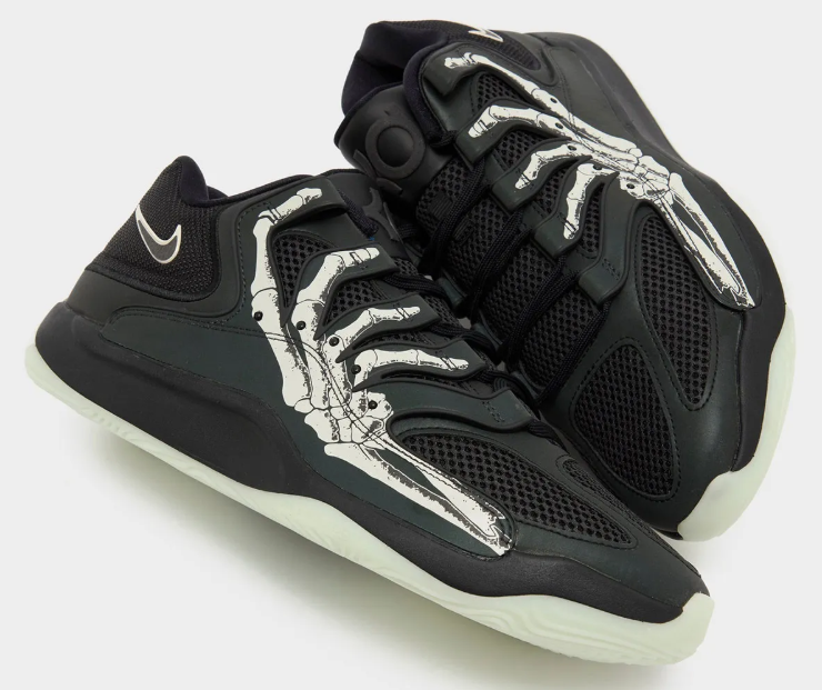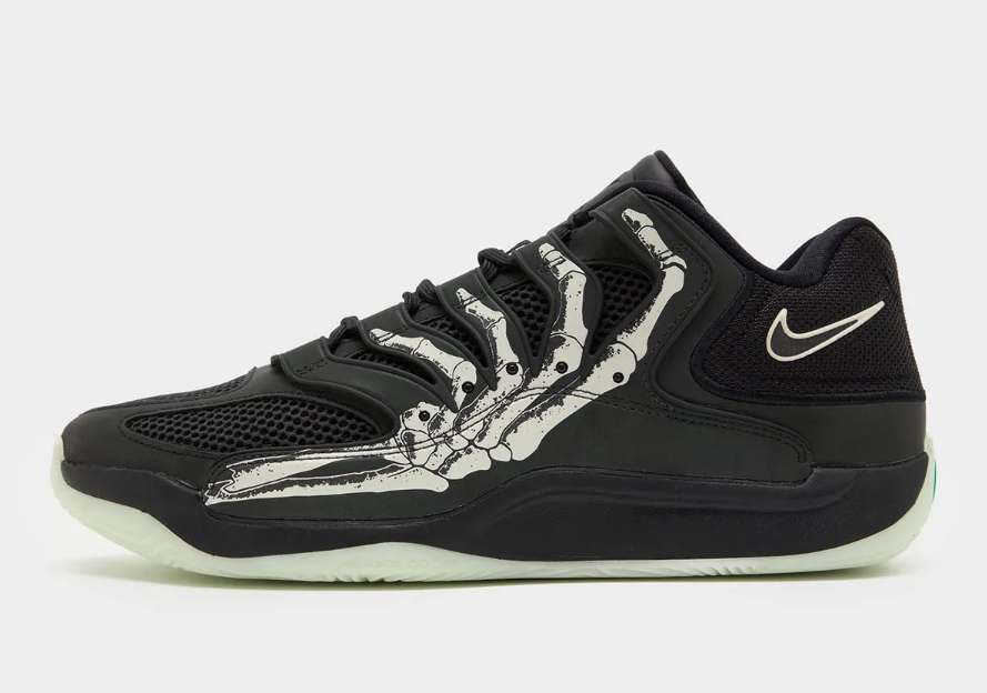 本文给大家带来的便是Nike KD 18即将发售的全新配色——「Halloween」,除了Kevin Durant上脚亮相之外,Nike方面早在今年7月就已经展现出了其近照图辑;黑色元素占据了鞋履的主色调,搭配上独具Halloween节日风格的手臂元素,完美的契合Kevin Durant自身“Slim Reaper”的外号。