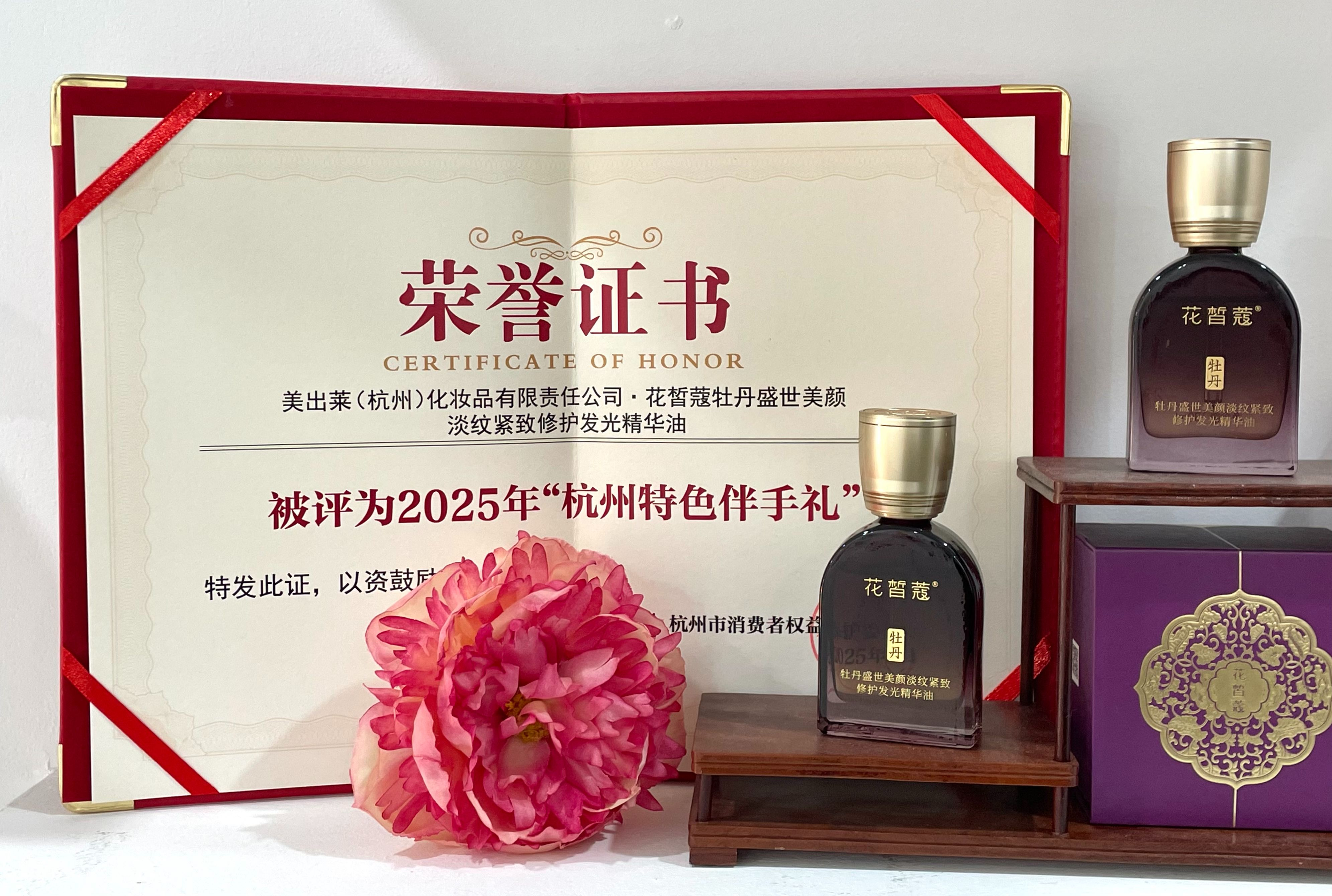 在以严苛标准守护产品安全的同时,花皙蔻的产品实力也获得官方认可。10月23日,2025年“杭州特色伴手礼”发布暨“西湖秋叙・礼聚一堂”分享沙龙举行,活动正式揭晓2025年“杭州特色伴手礼”认定名单,由杭州市消费者权益保护委员会为入选企业颁发证书。花皙蔻牡丹盛世美颜精华油凭借过硬品质与鲜明特色成功入选,成为承载杭州“匠心、创新与城市心意”的代表之一。