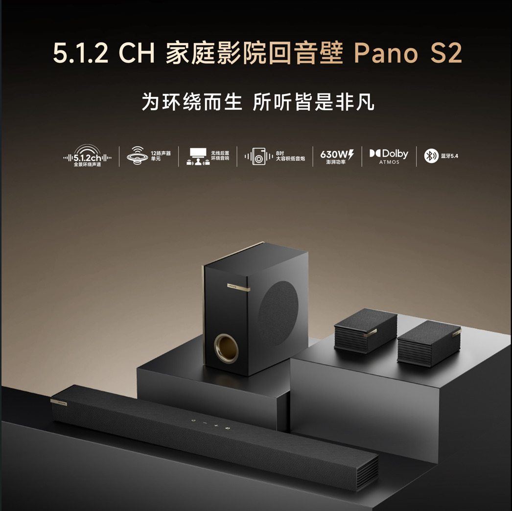 家庭影院回音壁Pano S2:630W澎湃动力重新定义沉浸声场