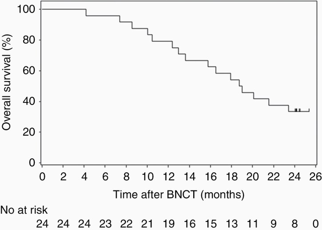 BNCT在多种难治性肿瘤治疗中展现出良好效果。日本一项针对复发性恶性胶质瘤的研究显示,BNCT可有效延长患者生存期。这项在II期JG002试验共27例患者接受治疗,结果显示:中位总生存期(OS)为18.9个月,1年生存率为79.2%,1.5年生存率为54.2%,2年生存率为33.3%。