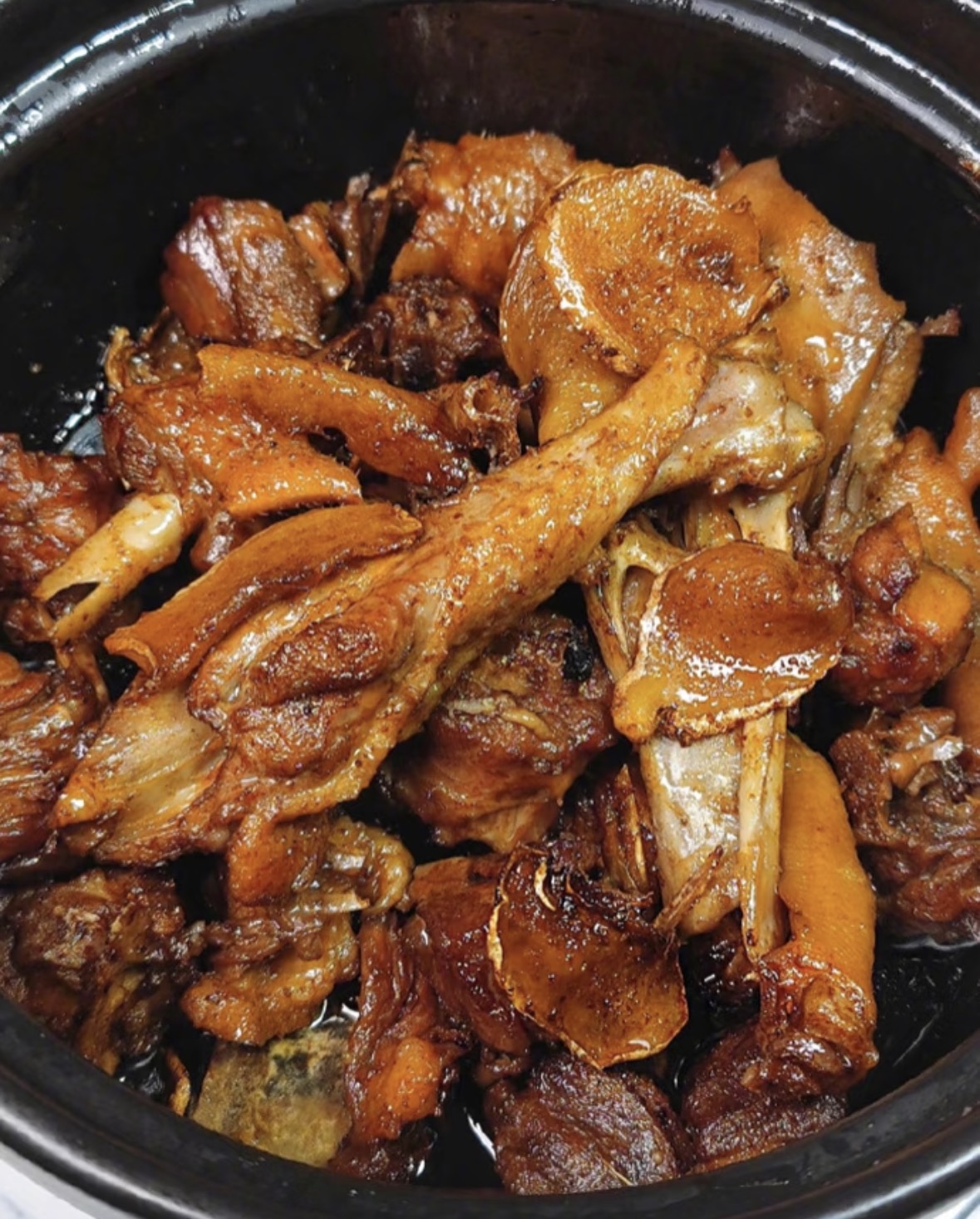 至关重要的一步,关乎鸭肉的灵魂——软烂入味。将锅内所有内容转入砂锅,注入热水,水量以刚刚淹没鸭肉为宜。大火煮沸后,转为最小的火,盖上盖子,让时间施展魔力。慢炖的过程,是风味融合与升华的仪式。姜的辛辣逐渐柔和,渗入鸭肉的每一丝纤维;麻油的香与鸭油的丰腴相互交融;酱油与冰糖调和出咸中回甘的深邃底色。约莫一个半小时后,打开锅盖,香气排山倒海般涌来。此时汤汁已收浓,鸭肉酥烂到轻轻一扯便骨肉分离,姜片也变得软糯可口,精华尽释。