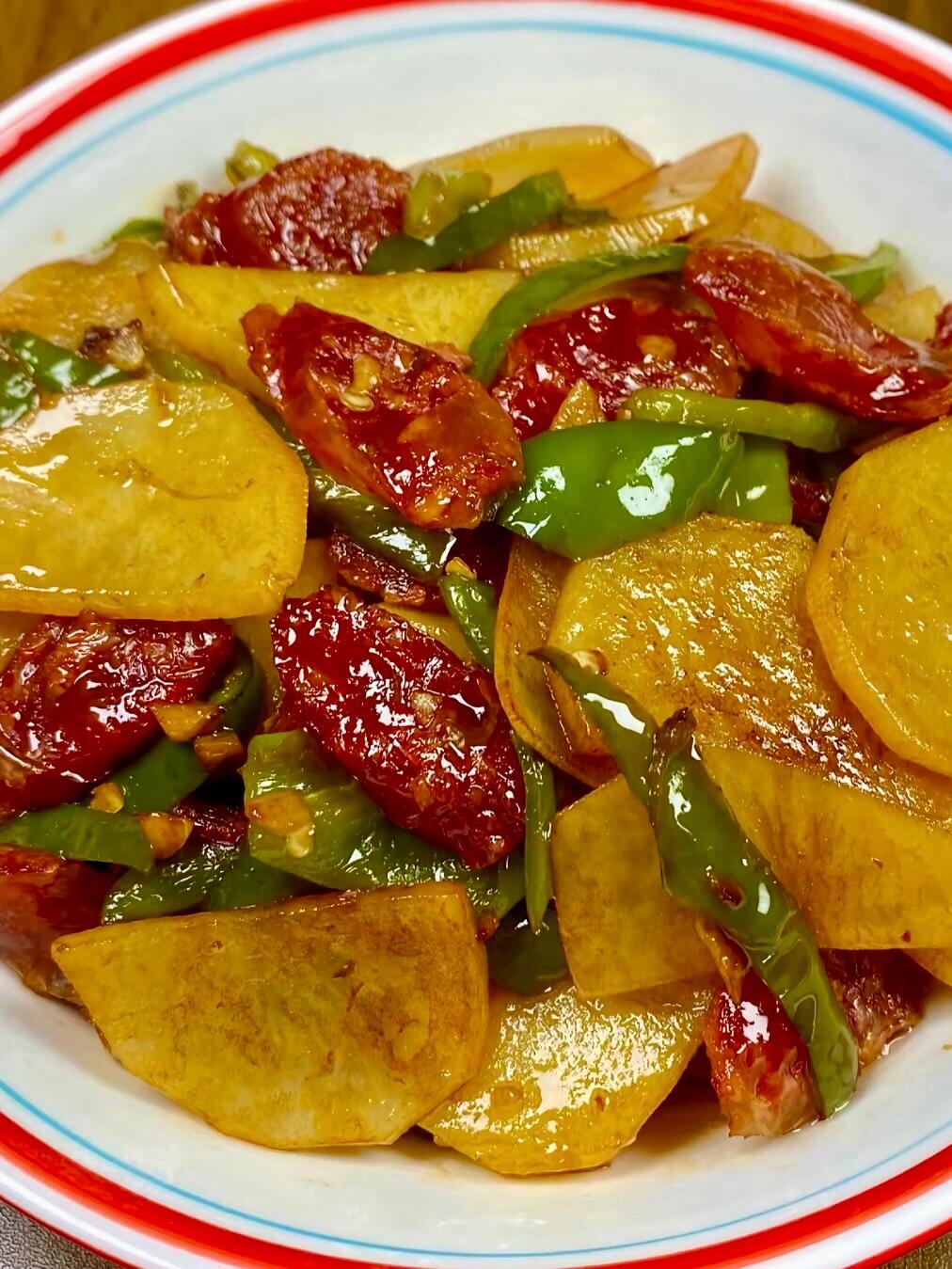 要说冰箱里有什么食材是永远的神,腊肠和土豆绝对榜上有名!一个咸香浓郁,一个软糯百搭,组合在一起简直就是下饭界的黄金搭档。