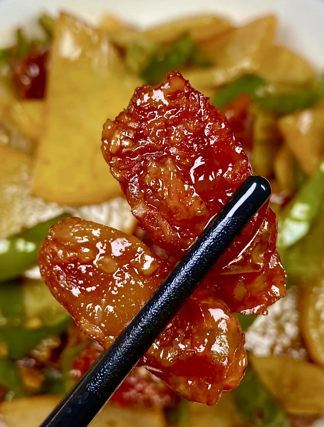 炒好的腊肠土豆片盛进盘子里,红亮的腊肠、金黄的土豆片、翠绿的青椒,色彩搭配得让人心情愉悦。趁热夹一筷子,土豆片外焦里糯,吸饱了腊肠的油脂和香气,咸香中带着微微的甜;腊肠嚼劲十足,越嚼越香,那股子独特的风味在嘴里久久不散。