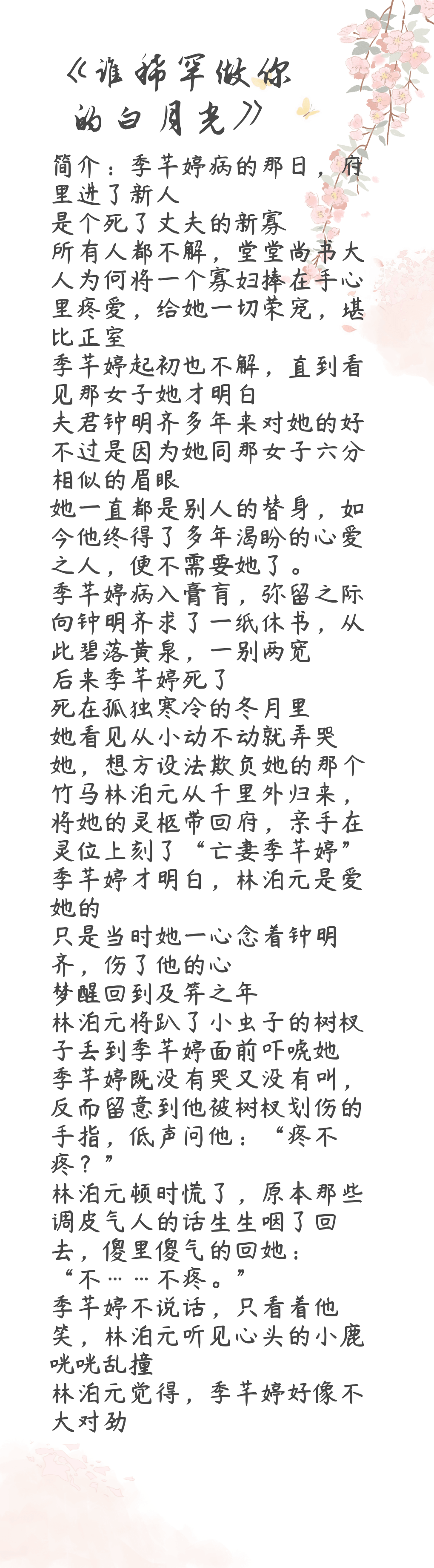 书名:谁稀罕做你的白月光作者:乘舟拾星状态:完结类型:爱情女主 季芊葶 X 男主 林泊元