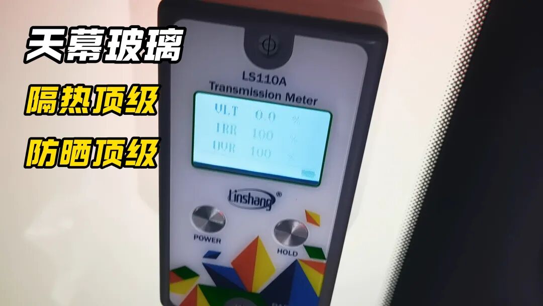 天幕玻璃是个例外,0%的透光率(VLT)说明这块天幕玻璃或许有变色功能,100%的红外阻隔率(IRR)和100%的紫外阻隔率(UVR)都已经做到顶,也就是说这块天幕其实是一块不透光的玻璃车顶。这块车顶玻璃的用料绝对是良心!