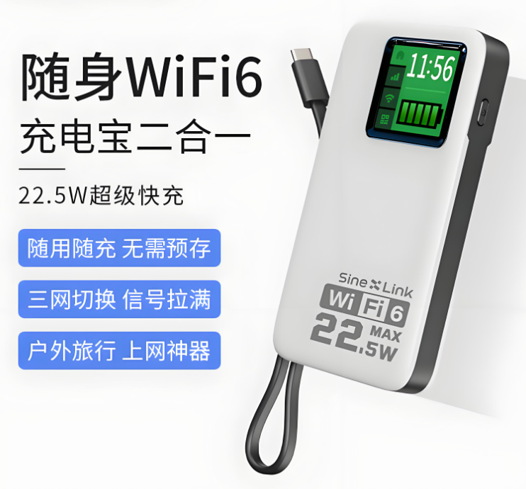 超长续航:单次充电可提供20-30小时网络服务,同时为手机充电2-3次;