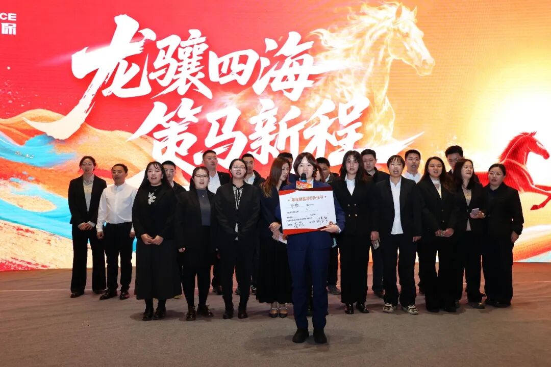 随后,李总为 5 大销售部门颁发年度销售任务书,全体参会人员共同宣读年度口号与誓言,铿锵誓言彰显出龙昌营销团队攻坚克难、勇攀高峰的坚定决心。