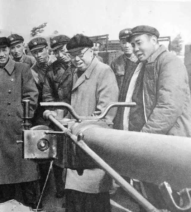 罗荣桓元帅视察56式160毫米迫击炮,其时任解放军总政治部主任,主持了解放军首次军衔评定。