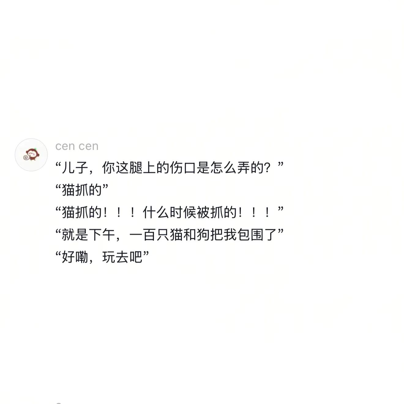 得知儿子被猫抓的时候又气又恼,恨不得立刻查监控去找猫主人,甚至要去打狂犬疫苗了吧,结果一听一百只猫围攻儿子,得气笑了哈哈。