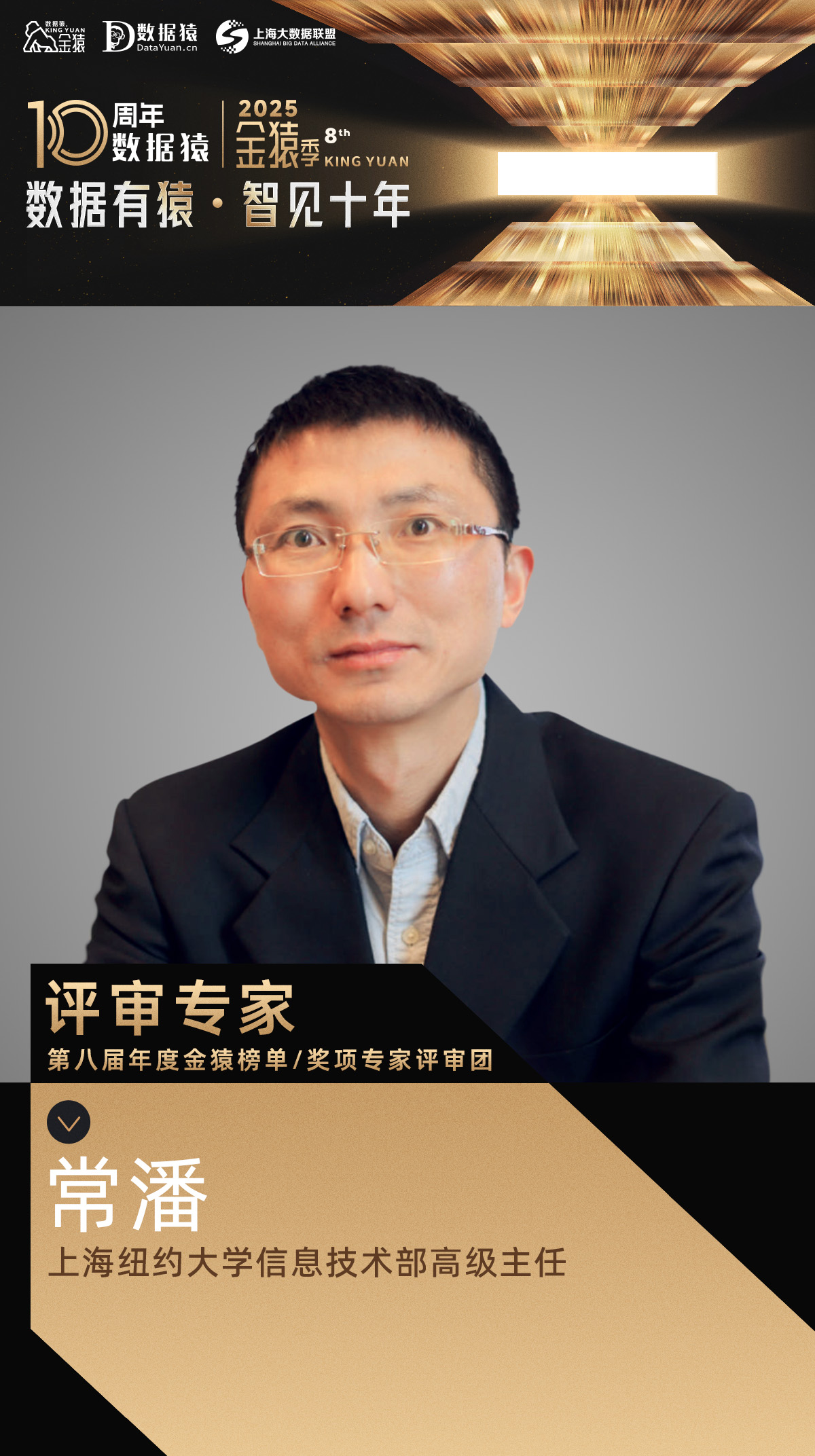 【终审团专家公告】上海纽约大学信息技术部高级主任常潘,已确认成为“2025第八届年度金猿”榜单/奖项评审团专家评委,并将授予评委荣誉证书。