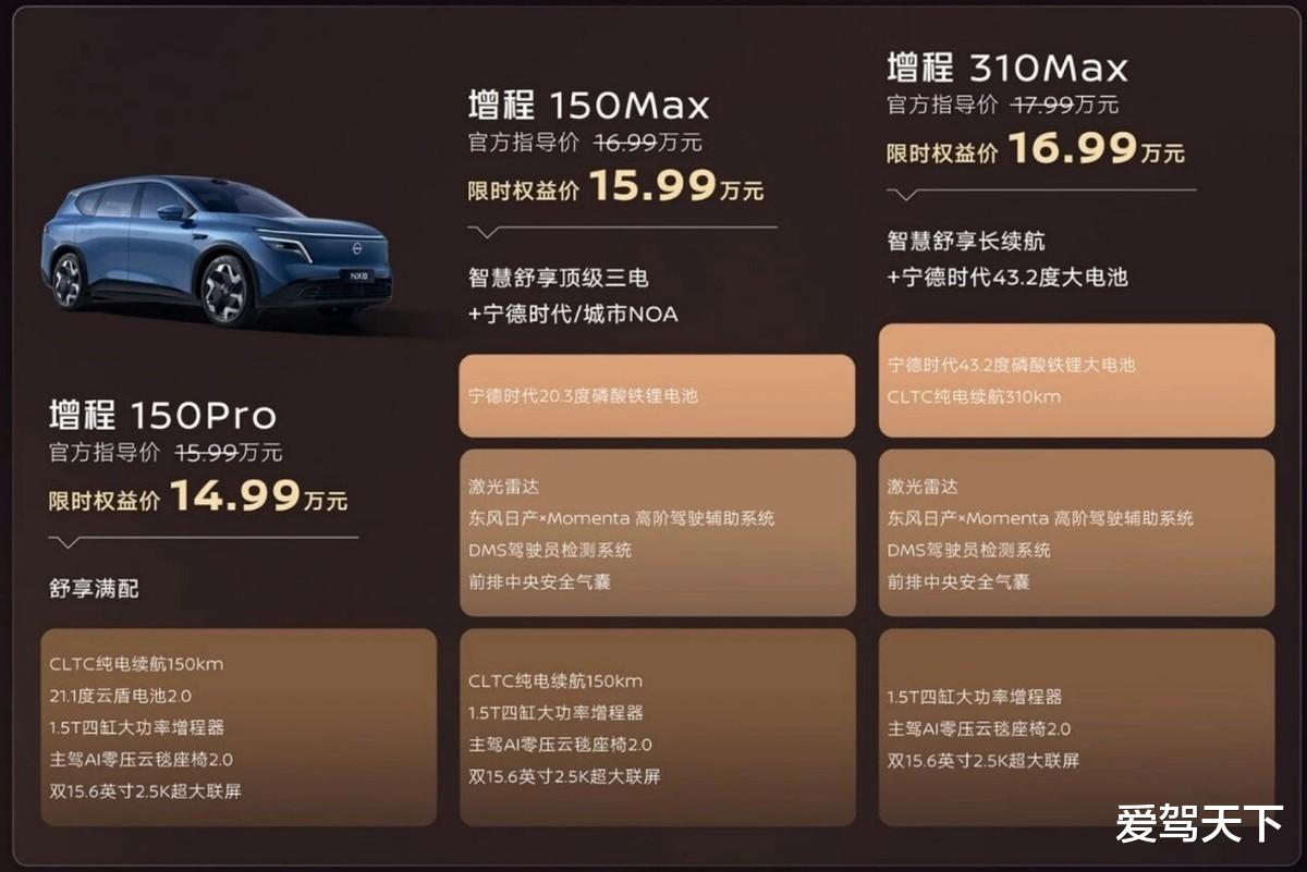 爱点评看完这7款配置,其实东风日产NX8的套路很清晰:入门版把舒适配置拉满,中高配卷智驾和续航,顶配则是“我全都要”。至于选增程还是纯电、要不要智驾,就看你家充电条件和对新鲜科技的执念了。评论区聊聊,你会选哪款?
