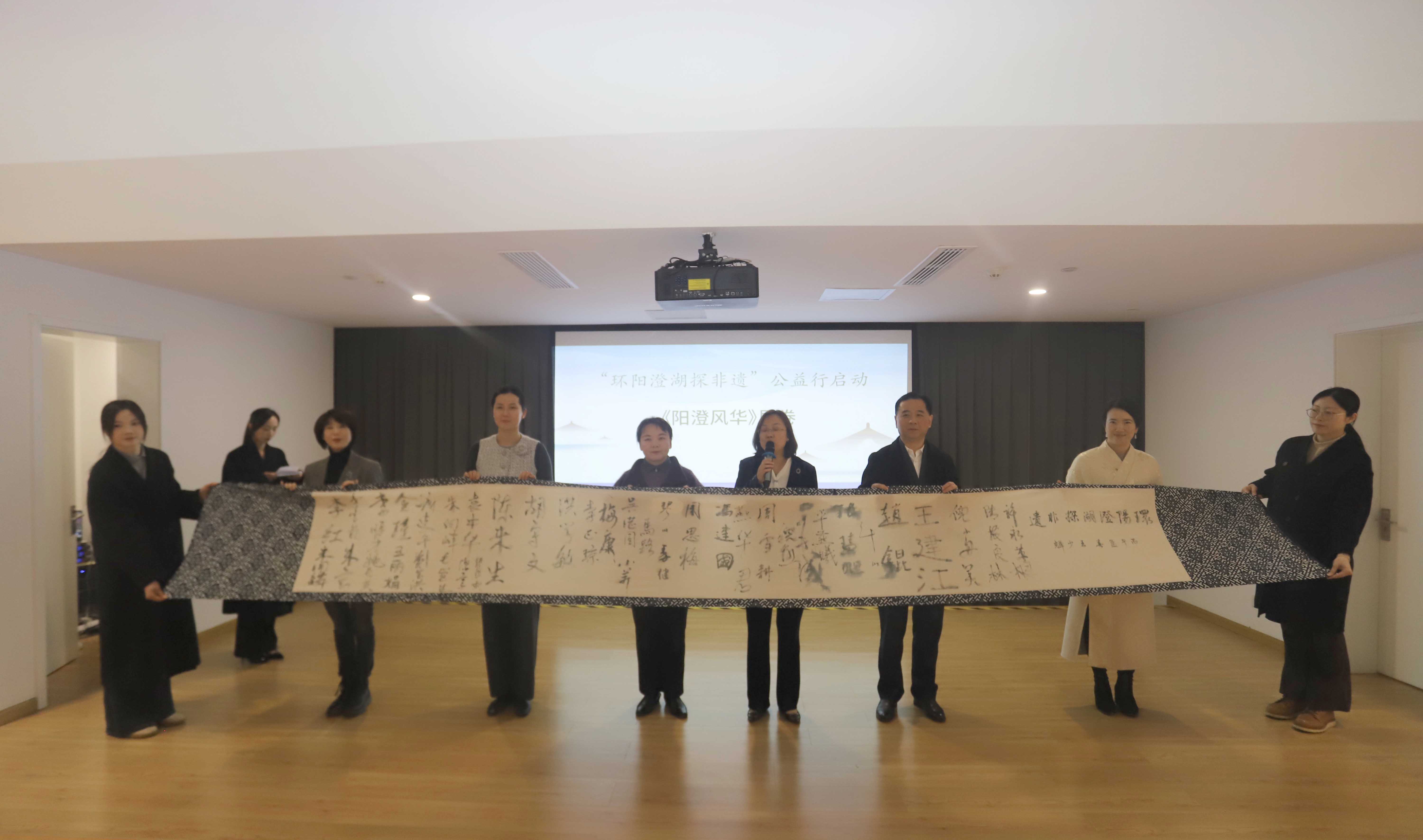 “我宣布,‘环阳澄湖探非遗’公益行启动!”随着相城区人民政府副区长姚娟的清亮声音,欢快的音乐响起,掌声如潮。这一刻,蓝白长卷已展开,文心匠笔已交汇,阳澄湖畔的传统文化,正以新的姿态走向更广阔的天地。