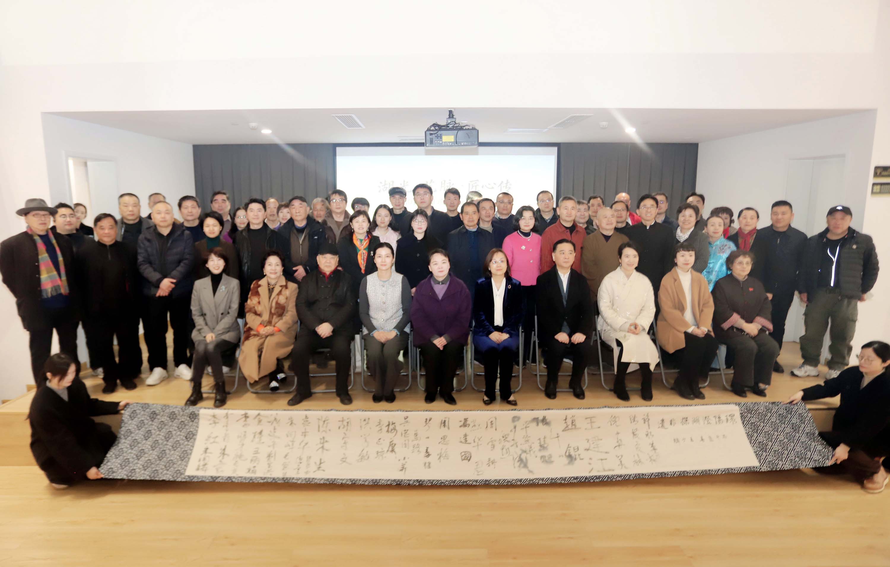 蓝印花布,是江南民间技艺的代表,素朴中见风骨,沉静中藏风华。当这抹蓝白完全呈现于众人眼前,笔锋与纹理交融,文心与匠笔汇聚,一幅阳澄湖畔薪火相传的文化群像跃然布上。这幅凝聚着深深期望的长卷,将永久珍藏于阳澄湖大闸蟹文化馆,成为本次公益行最动人的开篇。