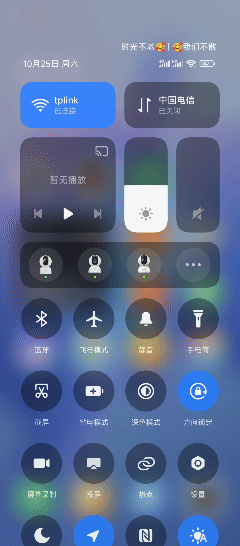 第一种方式,也是最简单的方式,我们只要在手机顶部往下拉,找到控制中心,接着找到蓝牙图标,点击一下,图标变成蓝色,就打开蓝牙了,打开之后,在手机右上角也会显示一个牙齿一样的图标!