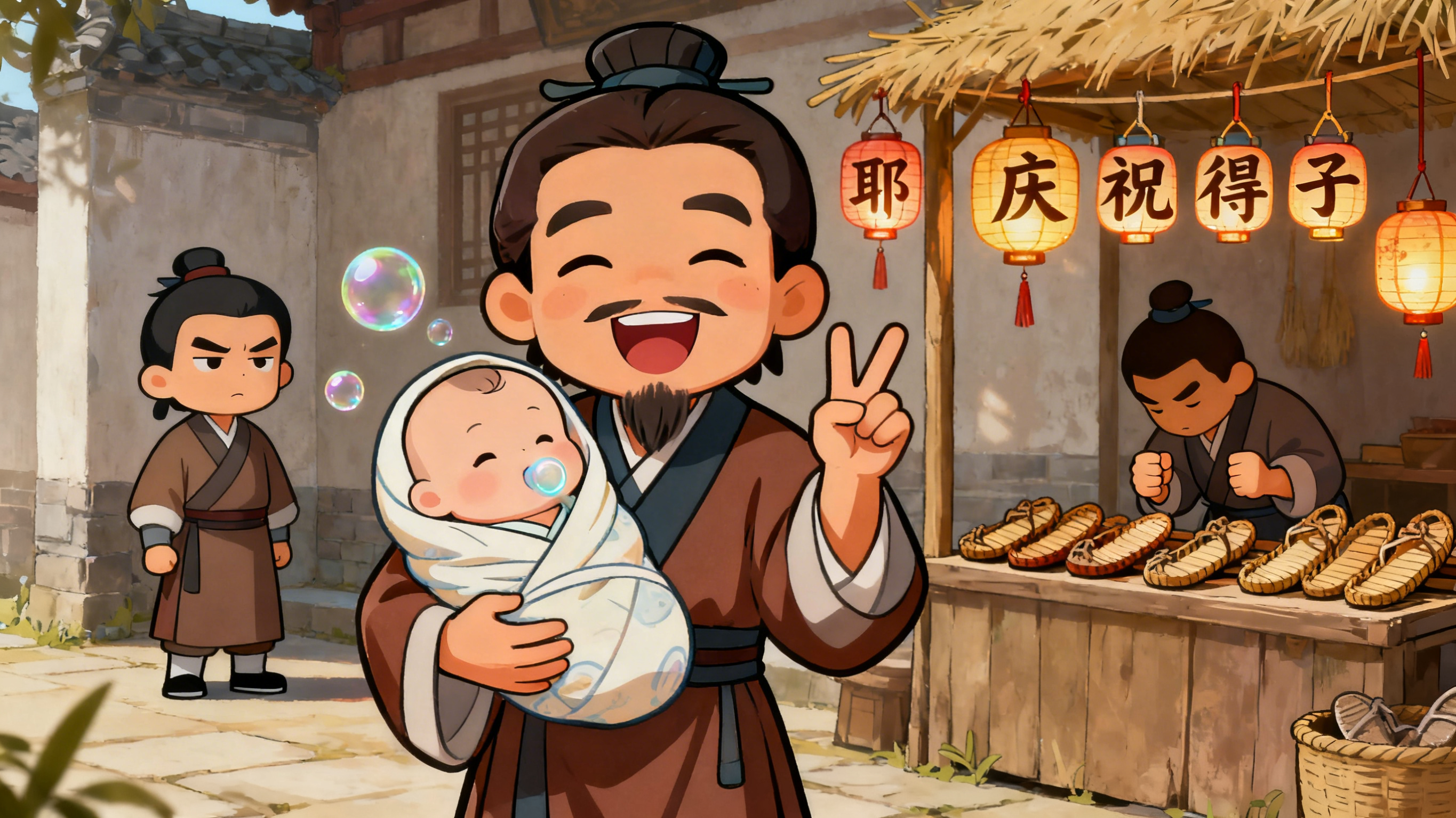 后来刘禅出生了,刘备开心到差点举办草鞋界的国庆节。