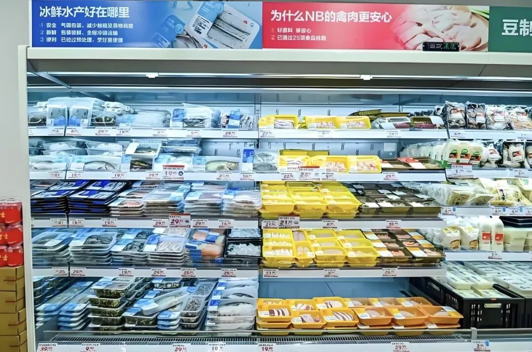 3000㎡以上门店规模,海鲜现制、烘焙、熟食占比高,线上订单占比超过60%,30分钟履约覆盖周边3公里。它承担的是品牌形象、品质消费、中高端客群稳定复购。