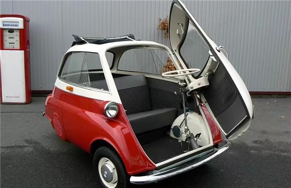 这辆1956年出厂的小车,车身迷你得像个放大版的鸡蛋,红白相间的配色倒也复古可爱。车门不是常规设计,而是从前挡风玻璃和引擎盖一起向上掀开——想想看,这画面是不是有点滑稽?它只有刹车、油门、离合器和方向盘,只有两个座位,动力系统更是个300cc的发动机,最大马力才13匹,极速85公里/小时。放在今天,这性能连电动自行车都比不上吧?