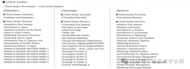 当学生结束留学经历回国后,GLAP 学生将继续通过选修多个学科的课程来拓宽视野。此外,学生在完成通识教育阶段和海外学习经历后,会选择一个专业领域:“人文”、“公民 ”或 “商业”。在每个领域,学生都会进行专业学习以加深理解。在最后一年,作为四年本科课程的顶点项目,学生必须参加 “最后一年研讨会 ”课程,并完成毕业论文。