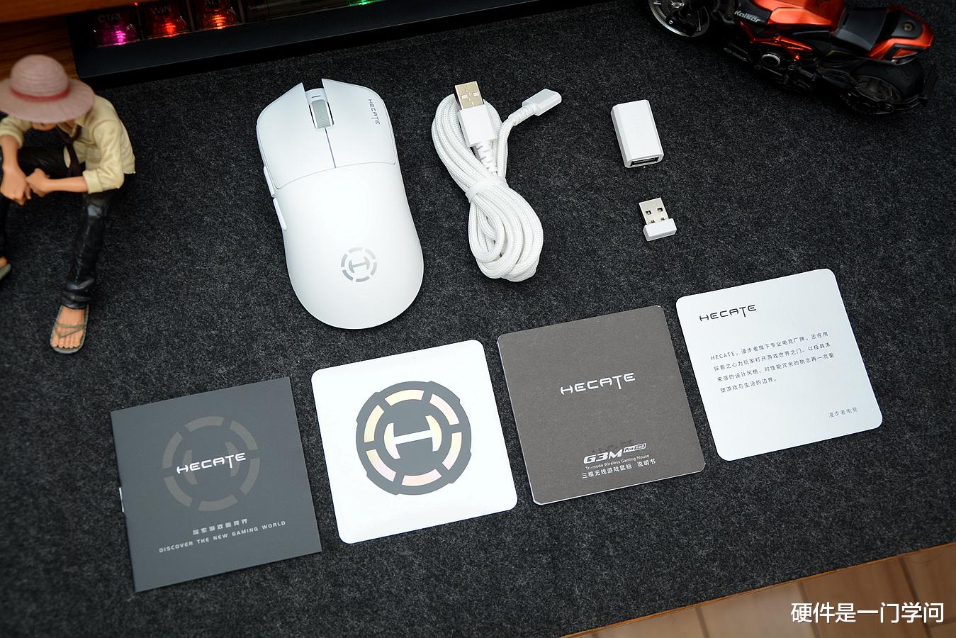 游戏时,鼠标切换为2.4G模式,通过数据线和转接头,将2.4G接收器引到鼠标附近,降低周围环境其他信号的干扰。不过我试了一下,毛毡桌垫不太行,不太跟手,需要搭配鼠标垫使用。