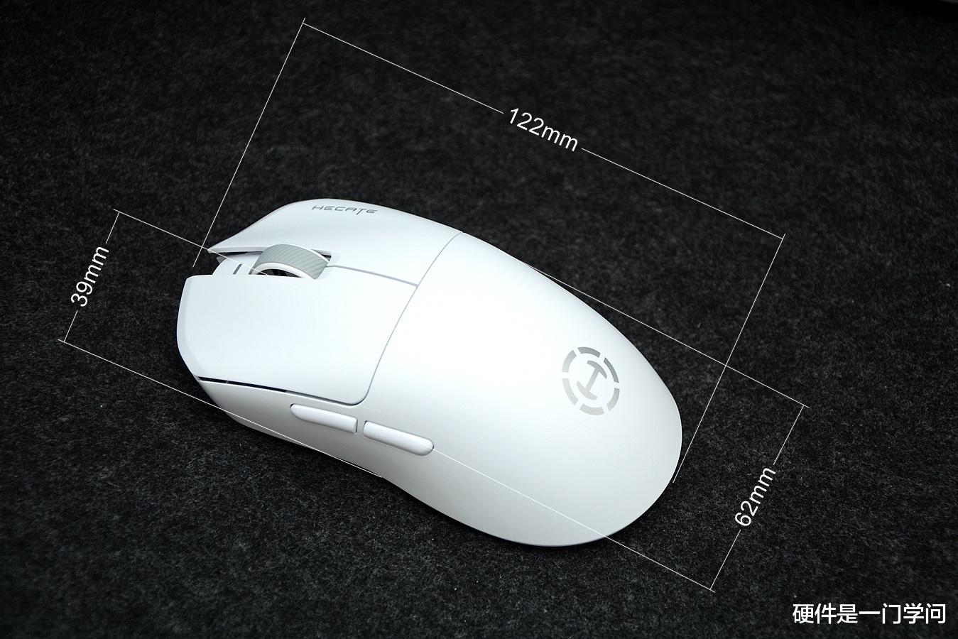 尺寸方面,长度由上代的188mm增加到122mm,宽度和高度与上代相近,分别为62mm和39mm,比较适合中大手型玩家。