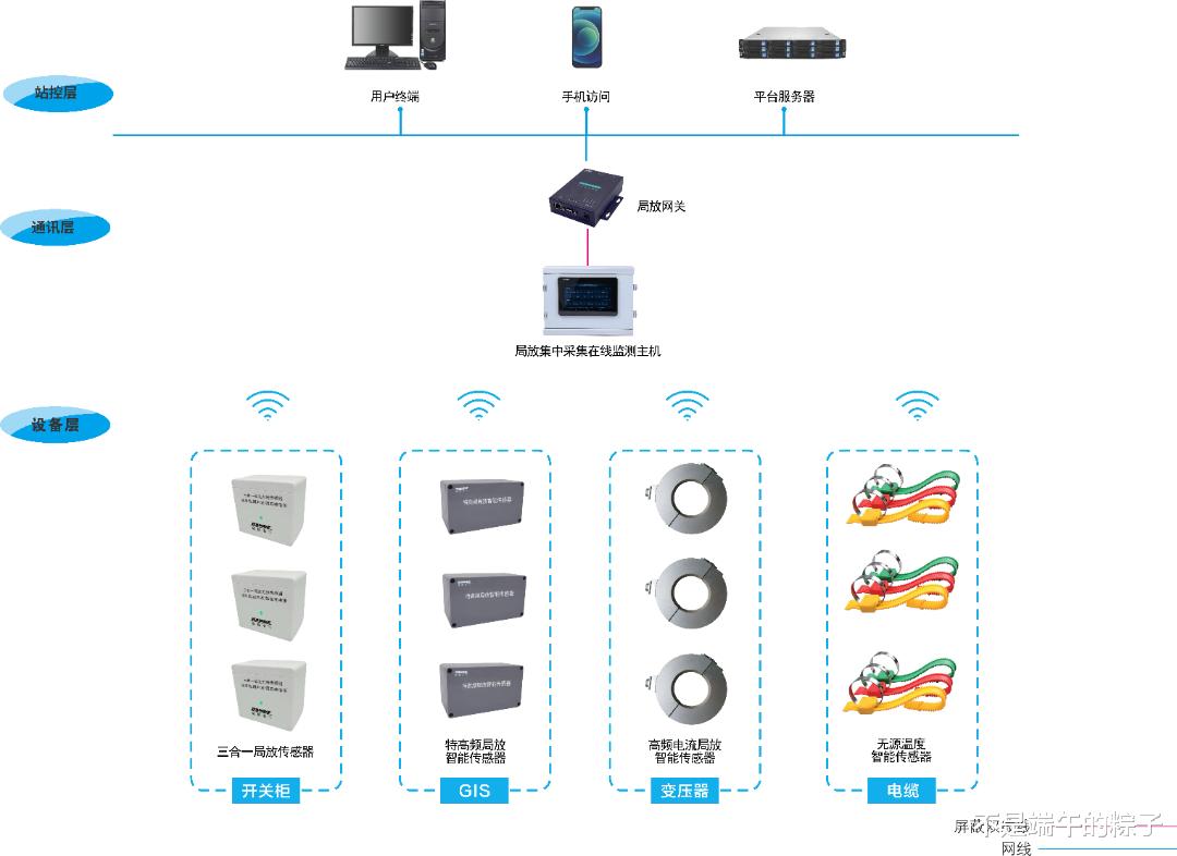 根据不同型号配置不同类型的传感器,主要有超声波(AE)暂态地电压(TEV)传感器、特高频(UHF)传感器、高频电流、温度传感器、环境温湿度、噪音传感器等。用于接收局部放电产生的一系列声波信号、电磁信号、电流信号、温度参数。