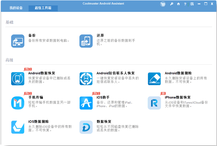 1.与 “如何一键备份 Android 数据” 的步骤 1 相同,并记得点击 “超级工具包” 选项。