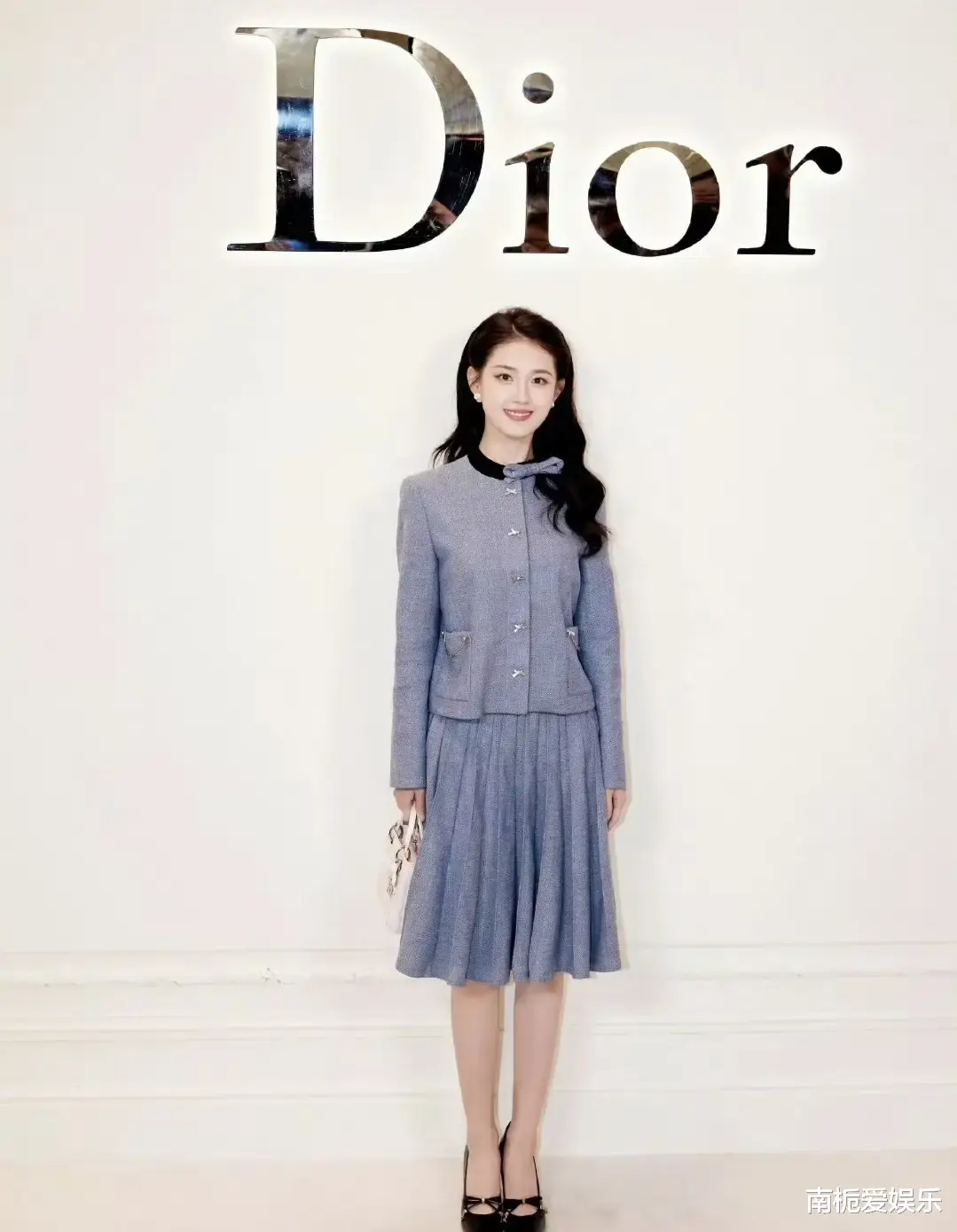 2026年1月10日,Dior 2026春夏系列上海快闪活动星光熠熠,短剧顶流郭宇欣以特邀嘉宾身份亮相,一身灰蓝色套装瞬间点燃全场热度。她身着Dior雾霾蓝小香风套装,上衣点缀精致银色蝴蝶结,下搭高腰百褶短裙,利落剪裁勾勒出优越身形比例。淡雅色调与缎面光泽交融,营造出“淡颜系”独有的温柔氛围,法式优雅与东方气韵在此刻完美碰撞。