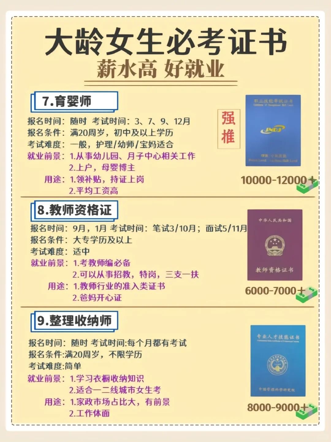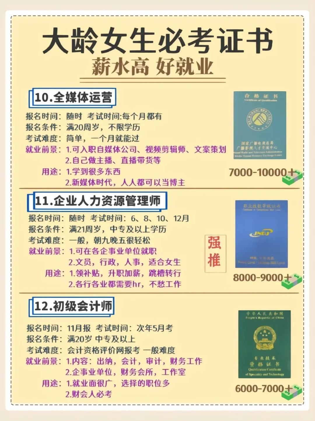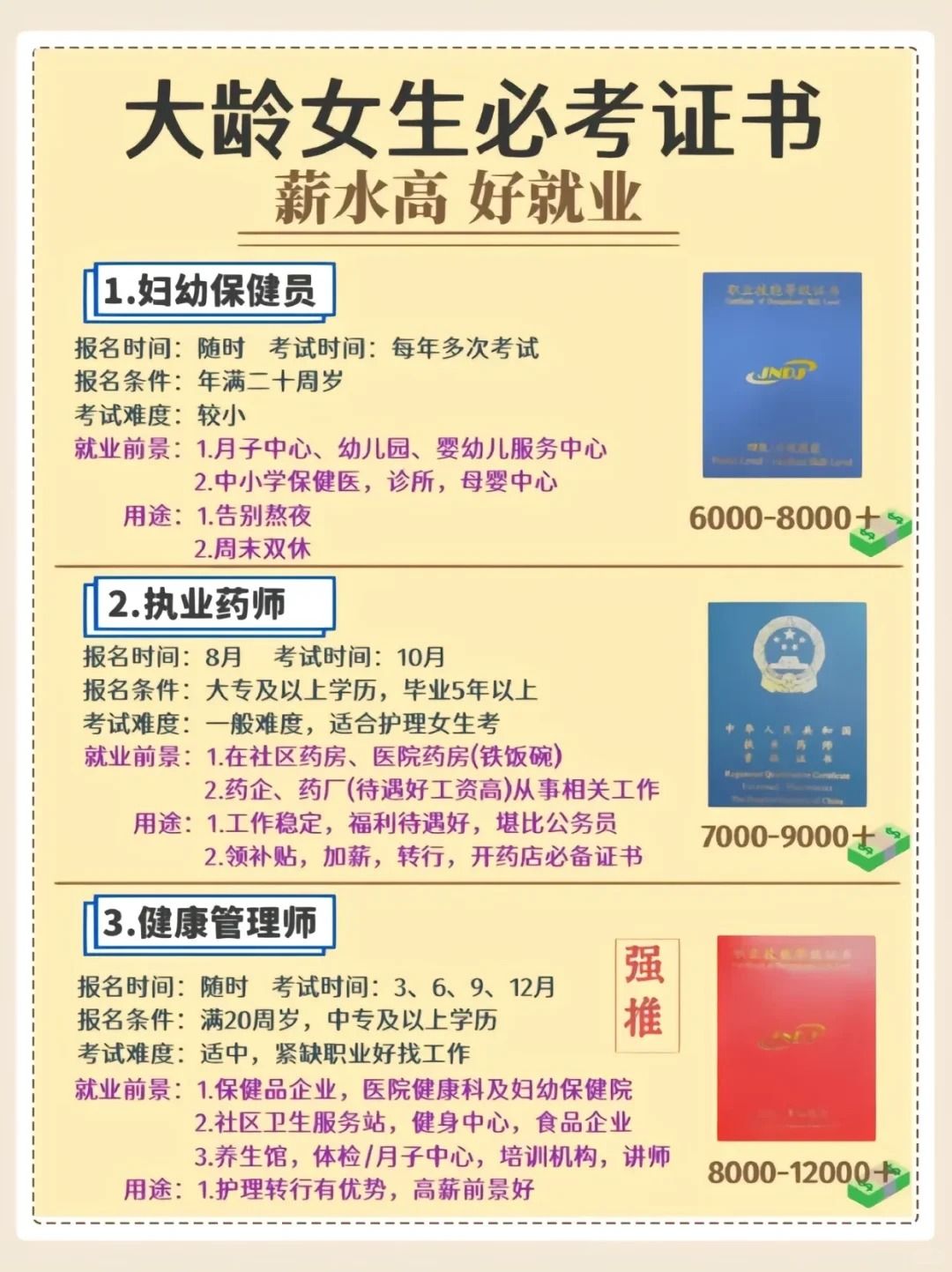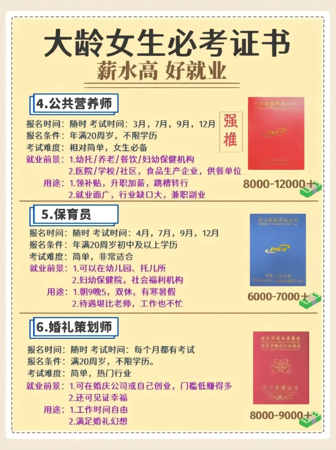 适合中年女性考的证书。即使到了中年也能实现自我的逆袭,不断提升自我!