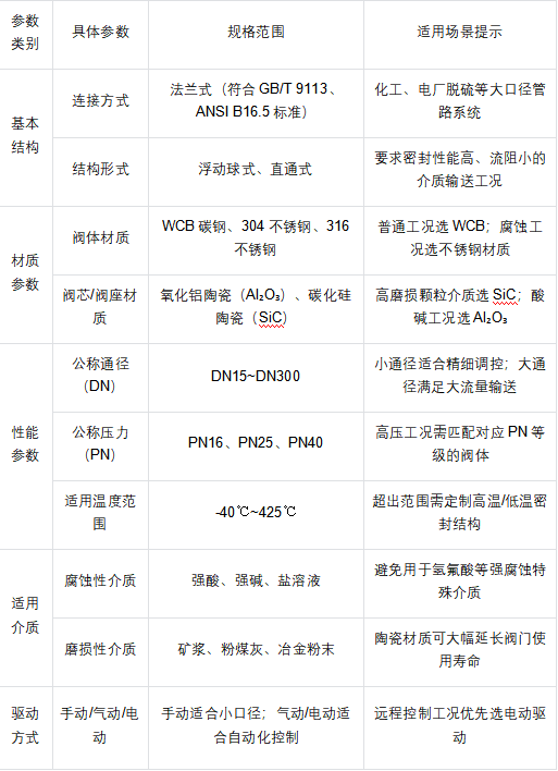 Q41TC陶瓷球阀选型参数对照表