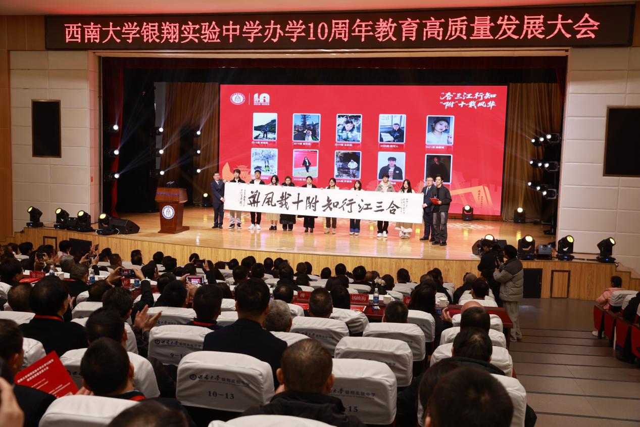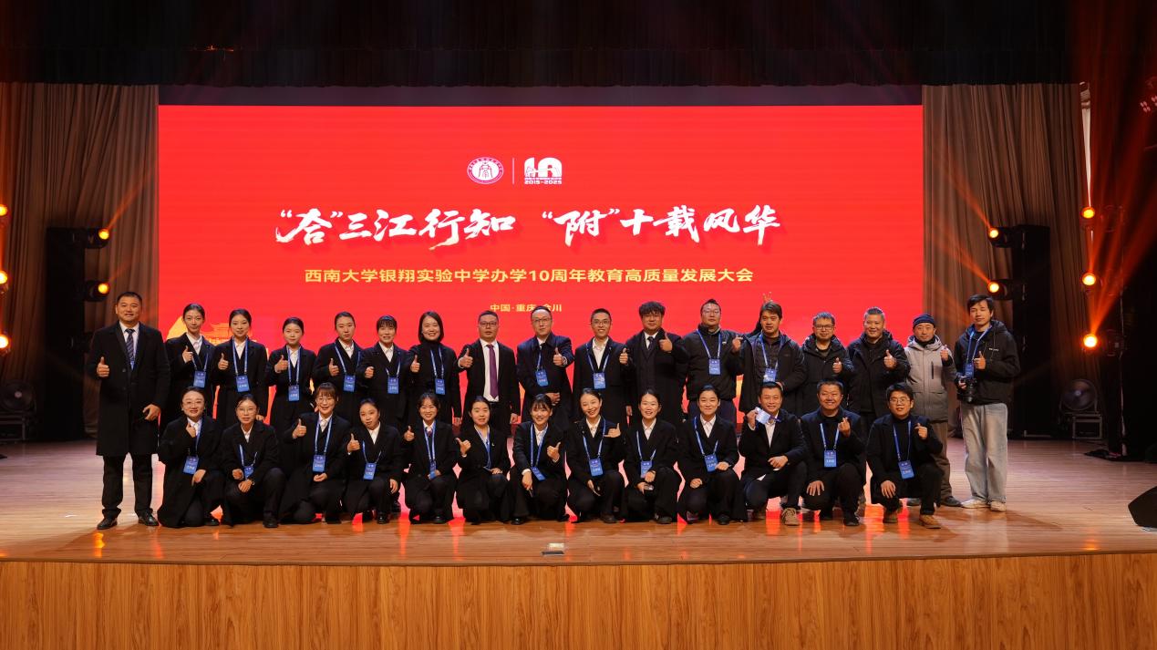 12月6日,西南大学银翔实验中学办学十周年教育高质量发展大会在该校立人报告厅隆重举行。西南大学党委书记张卫国,合川区委副书记、区政府区长陈桥,区政协主席叶华,重庆市委教育工委委员、市教委副主任李劲渝,区委副书记秦敏,区人大常委会党组成员、一级巡视员柳川,西南大学副校长赵玉芳,副区长袁晓钦等出席大会。