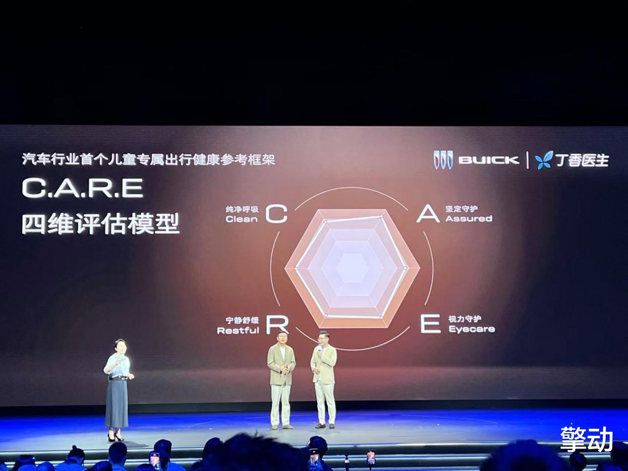 发布会的主题叫“快乐成长,爱在E7”,那么小朋友要快乐成长,作为一台家用车,最重要的就是安全和健康。按照别克官方以及樊登的说法,处于快速成长阶段的儿童,眼睛、皮肤、骨骼等部分相对脆弱,因此别克联合丁香医生发布了行业首个《儿童出行健康C.A.R.E模型》,该模型基于3792组中国家庭真实出行数据,联合多学科医学专家共同研发,为家庭用户构建全方位、系统化的健康守护。