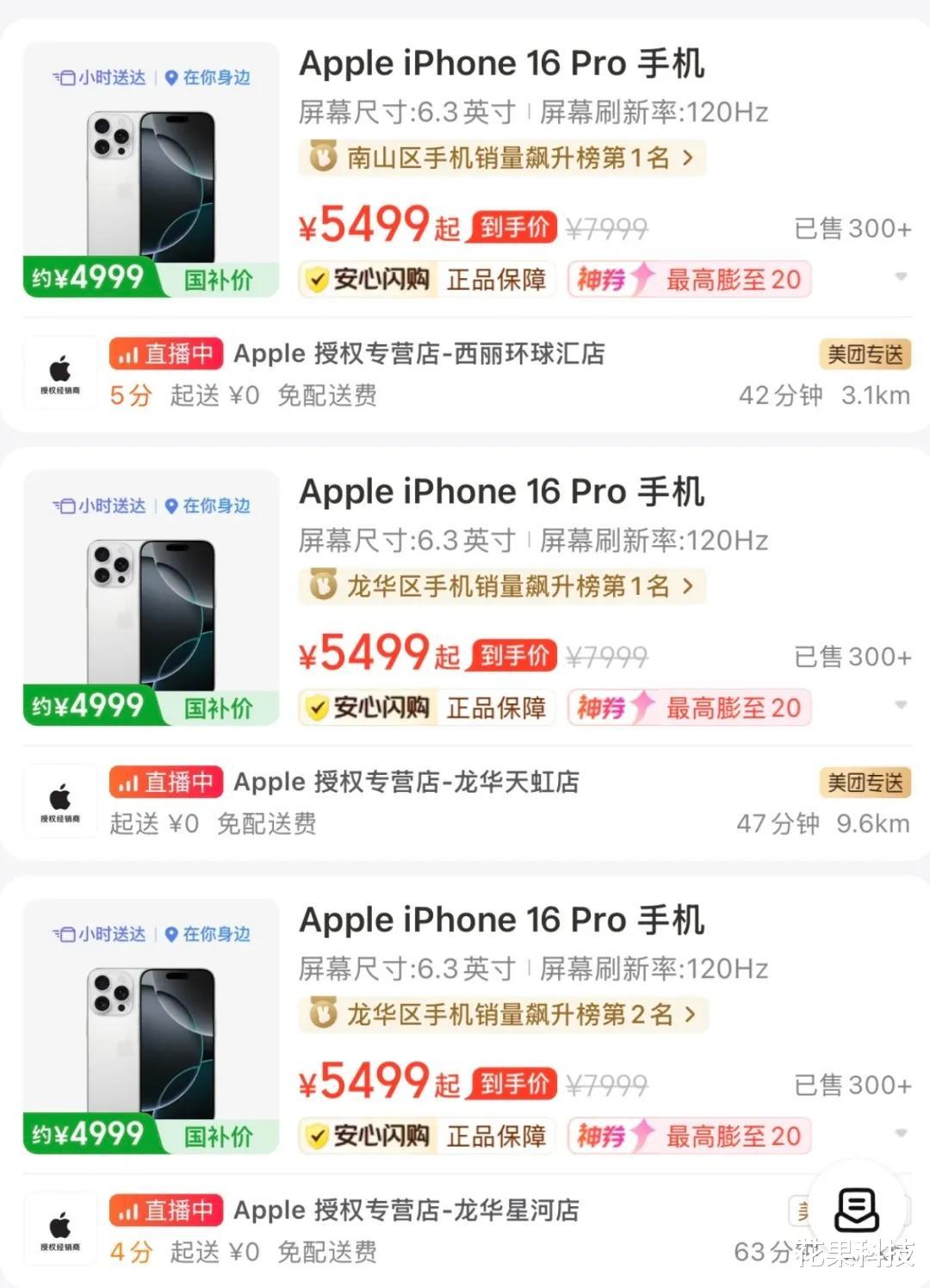 现在 iPhone 16 Pro 的好价又来了,在部分地区的美团闪购 iPhone 16 Pro 128GB 版本售价 5499 元,如果有国补资格的话 4999 元就能拿下。