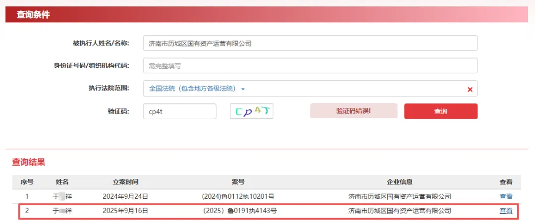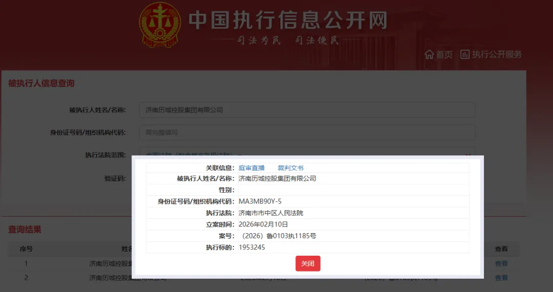 2026年4月9日,中国执行信息公开网披露的一则信息,再度将济南历城控股的合规经营问题暴露在公众视野。该公司因未依法履行相关法律义务,已被济南市市中区人民法院列为被执行人,执行标的金额195.32万元,案件立案于2026年2月10日,案号为(2026)鲁0103执1185号。