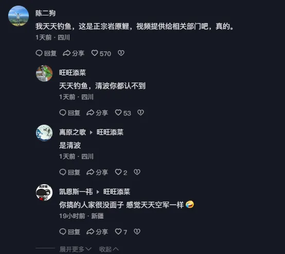 不过这样的说法并没有得到大家的认可,只见数位四川老乡纷纷说视频中的并不是岩原鲤,而是清波鱼,甚至有老乡调侃天天钓鱼还不认识鱼,感觉天天都没钓到鱼一样。