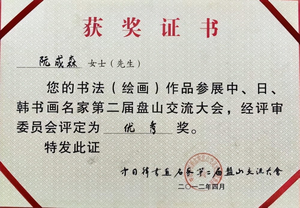 阮成森的艺术根基,深植于扎实的专业积淀与多元的学术滋养。1962 年出生于河南信阳光山县的他,自幼便受中原文化的浸润,对传统书画生出浓厚兴趣。而后,他以国家一级美术师的专业身份立身,更跻身河南省美术家协会会员,为艺术道路奠定坚实基础。